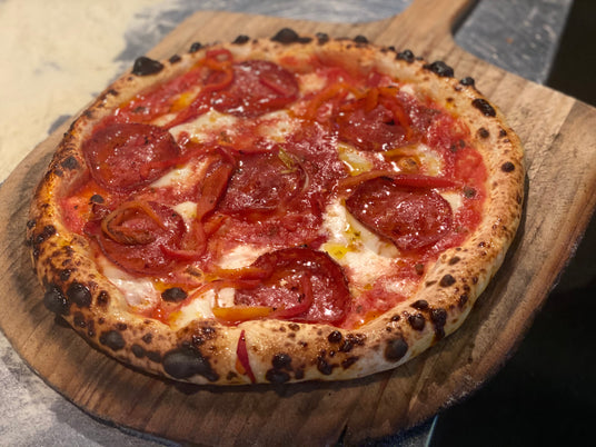 Tomato Sauce, Fior di Latte, Calabrese Salumi e Oven-Roasted Red Peppers